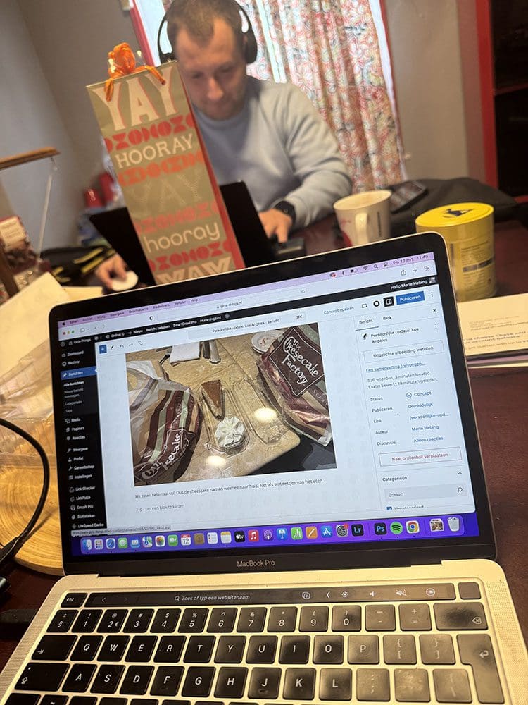 Woensdag (12 maart). Hiep hiep hoera, Thijs is jarig! We starten de ochtend lekker rustig achter de laptop.
