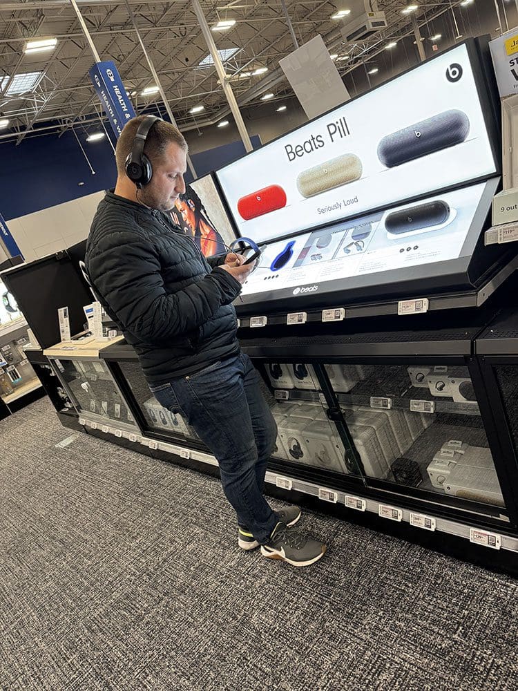 Dan door naar de Best Buy, een soort grote elektronica winkel in Amerika. Hier waren de Beads goedkoper. Thijs ging deze even testen. Daarna reden we weer naar huis.