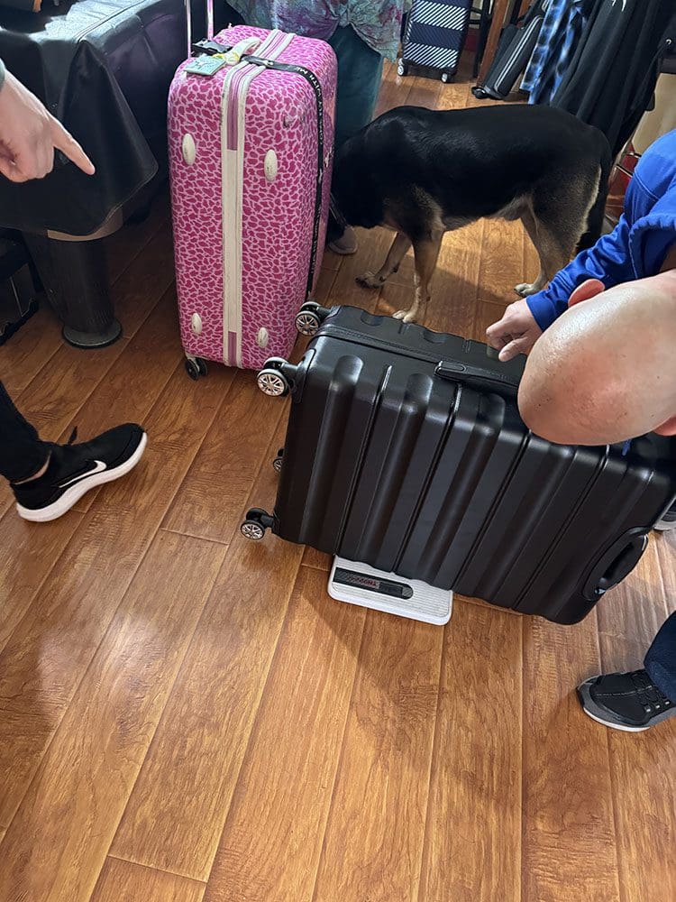 Koffers wegen haha. Die van mij was te zwaar en bij Thijs kon nog wat bij. Joey en Thijs hebben de boel een beetje eerlijk verdeeld.