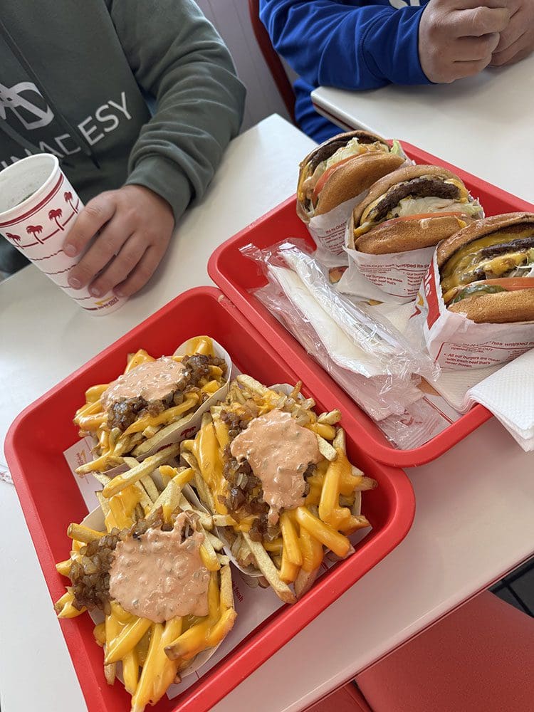 En voordat we gaan willen we graag nog één keer echt Amerikaans fastfood. In N Out!