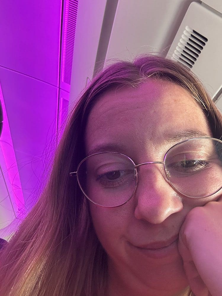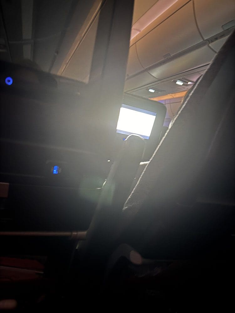 Maar niet te doen joh. De mensen voor ons bleven filmpjes kijken en dat gaf een bak met licht in mijn gezicht. Ppff. Ik heb een tijdje van stoel geruild met Thijs. Maar echt goed slapen lukte mij niet.