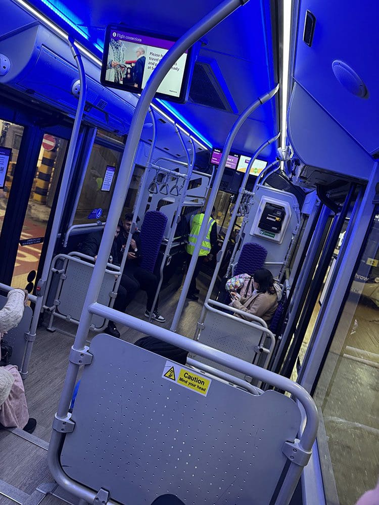 Snel lopen… Daarna moesten we een bus in naar een andere terminal. Wat is het vliegveld op Londen groot zeg.