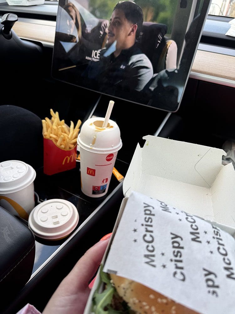 Van al dat lange wachten kregen we trek en het was alweer bijna etenstijd. Goed, nog een keer ongezond en ondertussen kon de Tesla opladen. Daarna heb ik thuis de handbagage uitgepakt, een filmpje gekeken en daarna lekker naar bed.