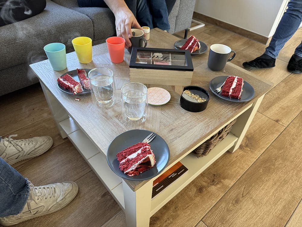 Taartje eten en veel gezelligheid.