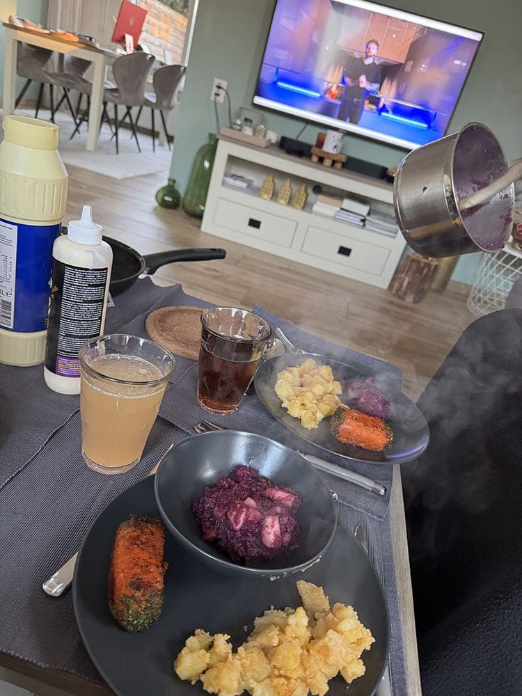 Jolynn bleef wat langer en at mee. We keken eerst samen Make Up Your Mind terug en daarna een lekkere Hollandse maaltijd.