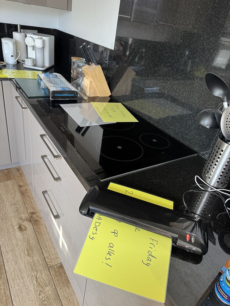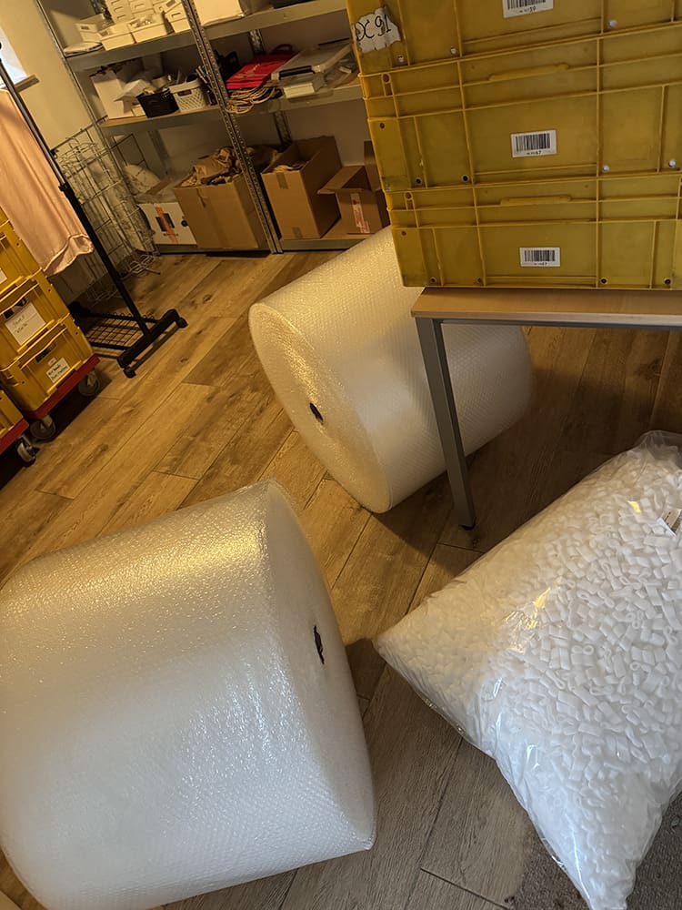 Ik heb die ochtend nog wat achter de computer gewerkt en kantoor opgeruimd. Er is nieuw verpakkingsmateriaal door Thijs gehaald. Wat een onhandige dingen…