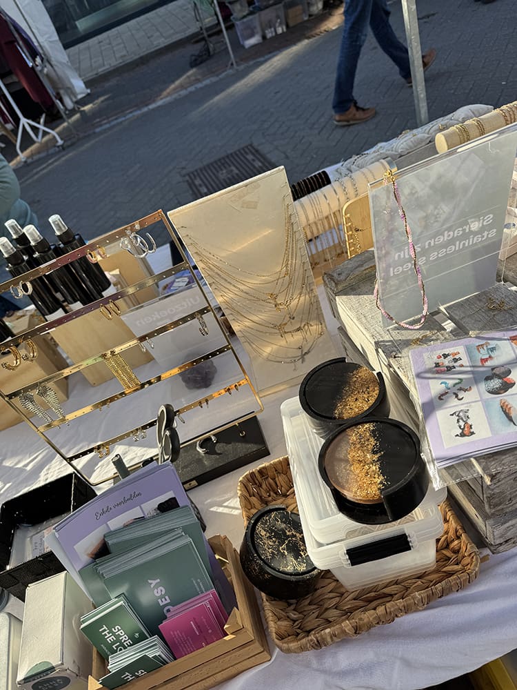 Onze nieuwe sieraden gaan ook op de kraam. Super leuk!