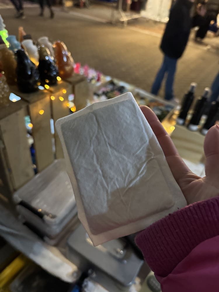 En ik heb deze warmte pleister geprobeerd. Deze plak je op je kleding en dan worden ze lekker warm. Daarna hield ik deze op mijn hand. En zo kon ik mijn handen opwarmen. Het lijkt wel een warmte maandverbandje zei ik al, haha.