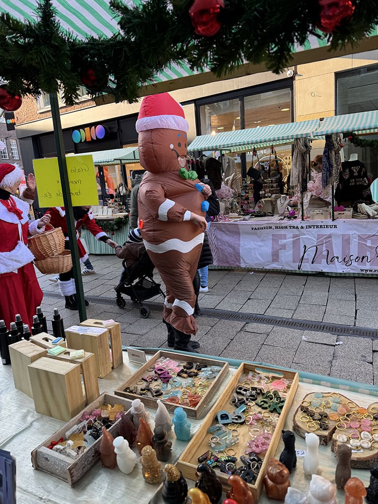 Het was echt hilarisch want er liep een kerstman rond en deze peperkoeken. Maar er was een koor dat sinterklaasliedjes zong, haha. Hoe dan?!