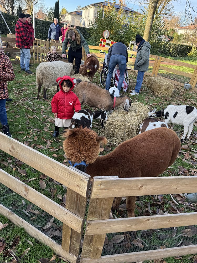 In een weitje was een hele mini boerderij uitgestald. Hoe schattig is die alpaca!