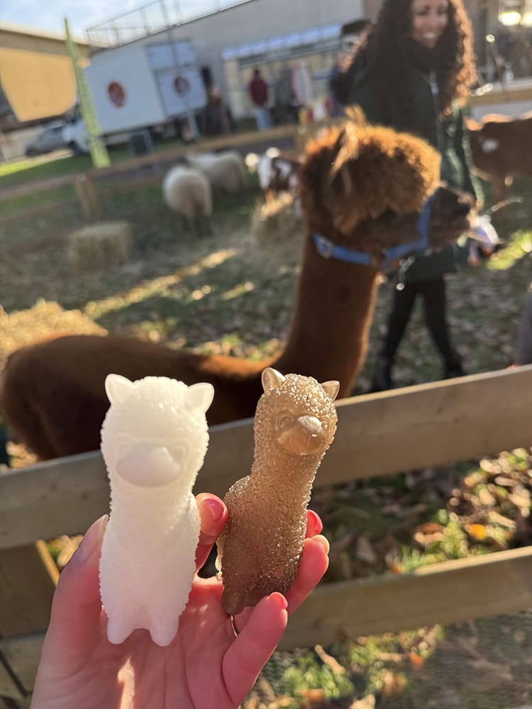 Onze epoxy alpaca’s kwamen even kijken bij de echte alpaca, haha.