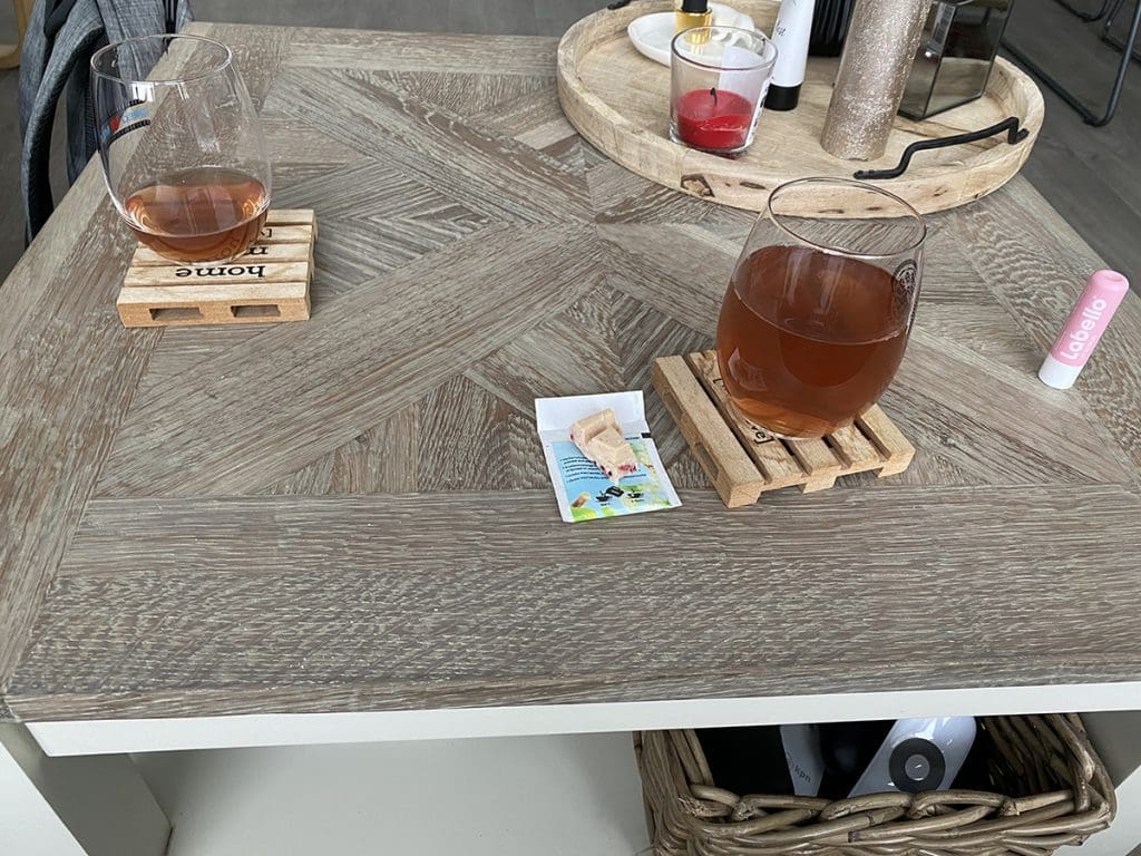 Nadat ik Wie is de Mol had gekeken maakten we een gezellig ‘ chipsplankje’ en keken we een stukje van de show van Najib Amhali, The Best Off. Lachen! En nee, we hadden niemand op bezoek (je ziet twee wijnglazen ja). Beide zijn van mij. Ik had twee verschillende wijntjes (eentje was op en ik begon dus aan een andere).