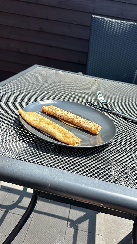 Vrijdag ( 7 juni). Na school at ik nog lekker een pannenkoek als lunch. Daarna ging ik opruimen en schoonmaken in huis.