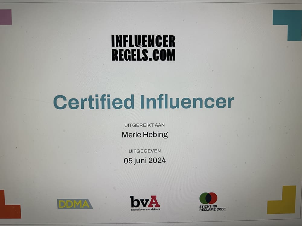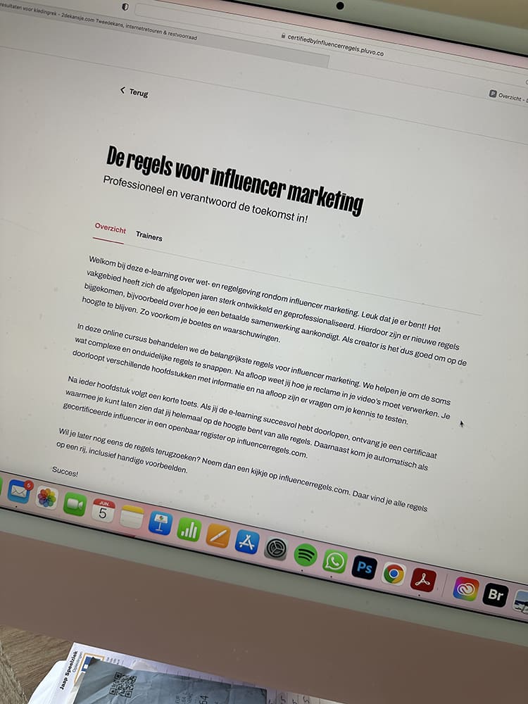 Woensdag (5 juni). Na mijn ochtend werken ging ik thuis achter de computer bezig. Mijn certificaat bij Influencersregels.com halen.