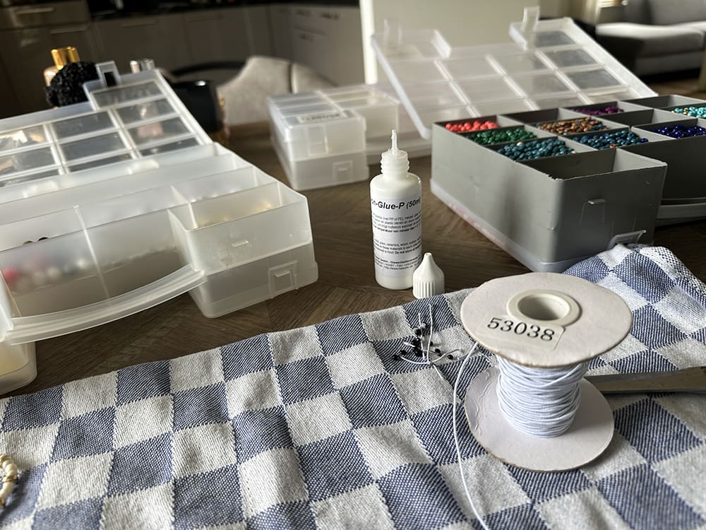 Donderdag (6 juni). Na mijn werk op school ging ik aan de slag om nieuwe kralen armbandjes te maken.