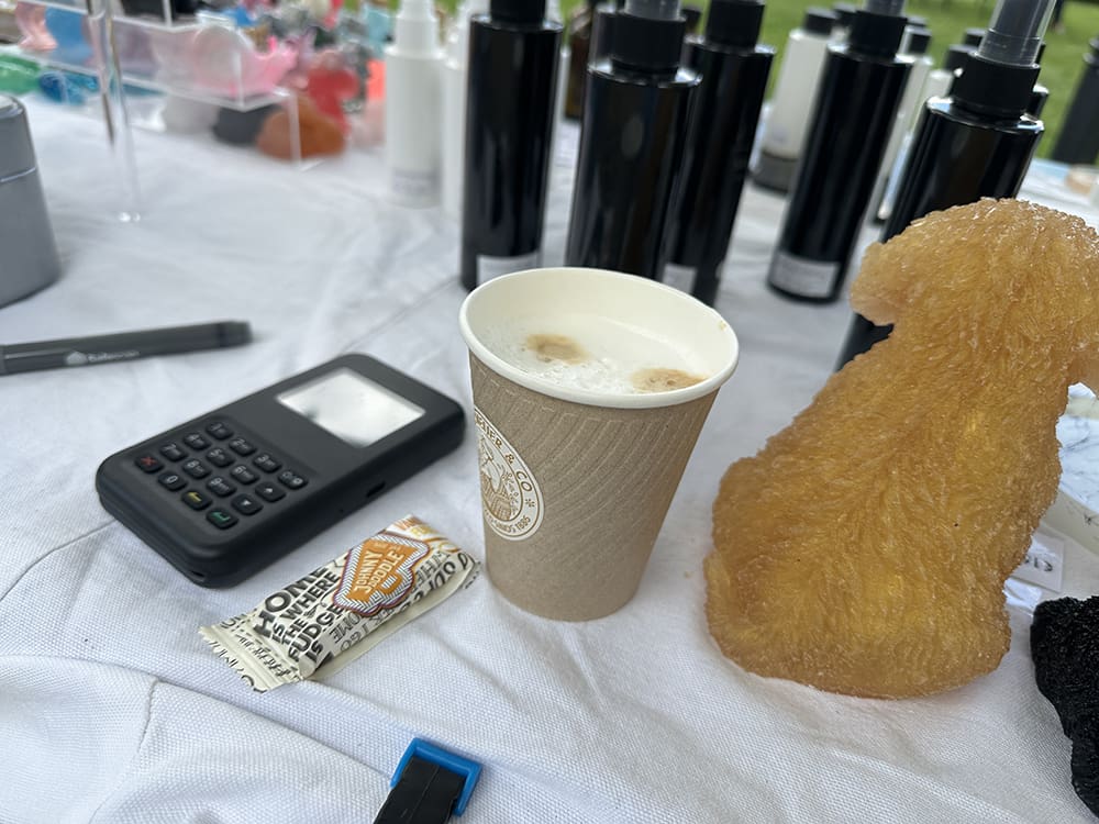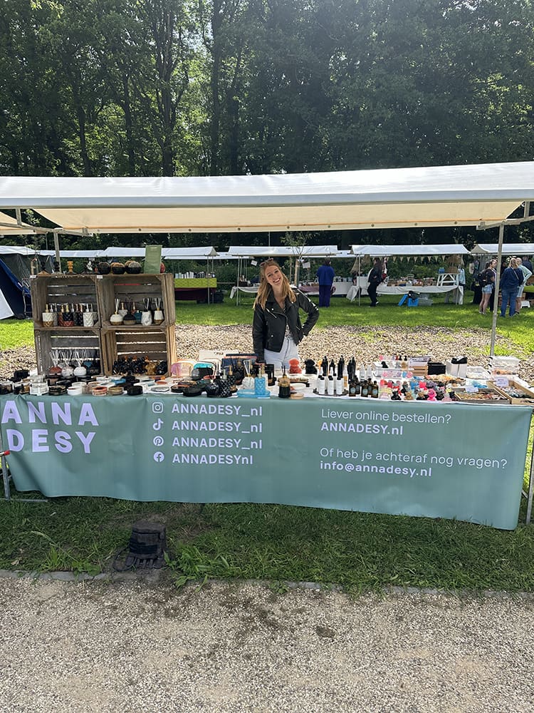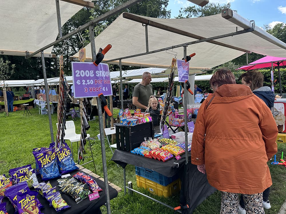 Iemand had afgezegd en zo hadden we samen met Snoepbaas een kraam over. Deze mochten wij delen en onze spulletjes dus opzetten. Zo hadden we meer ruimte. Heel fijn!