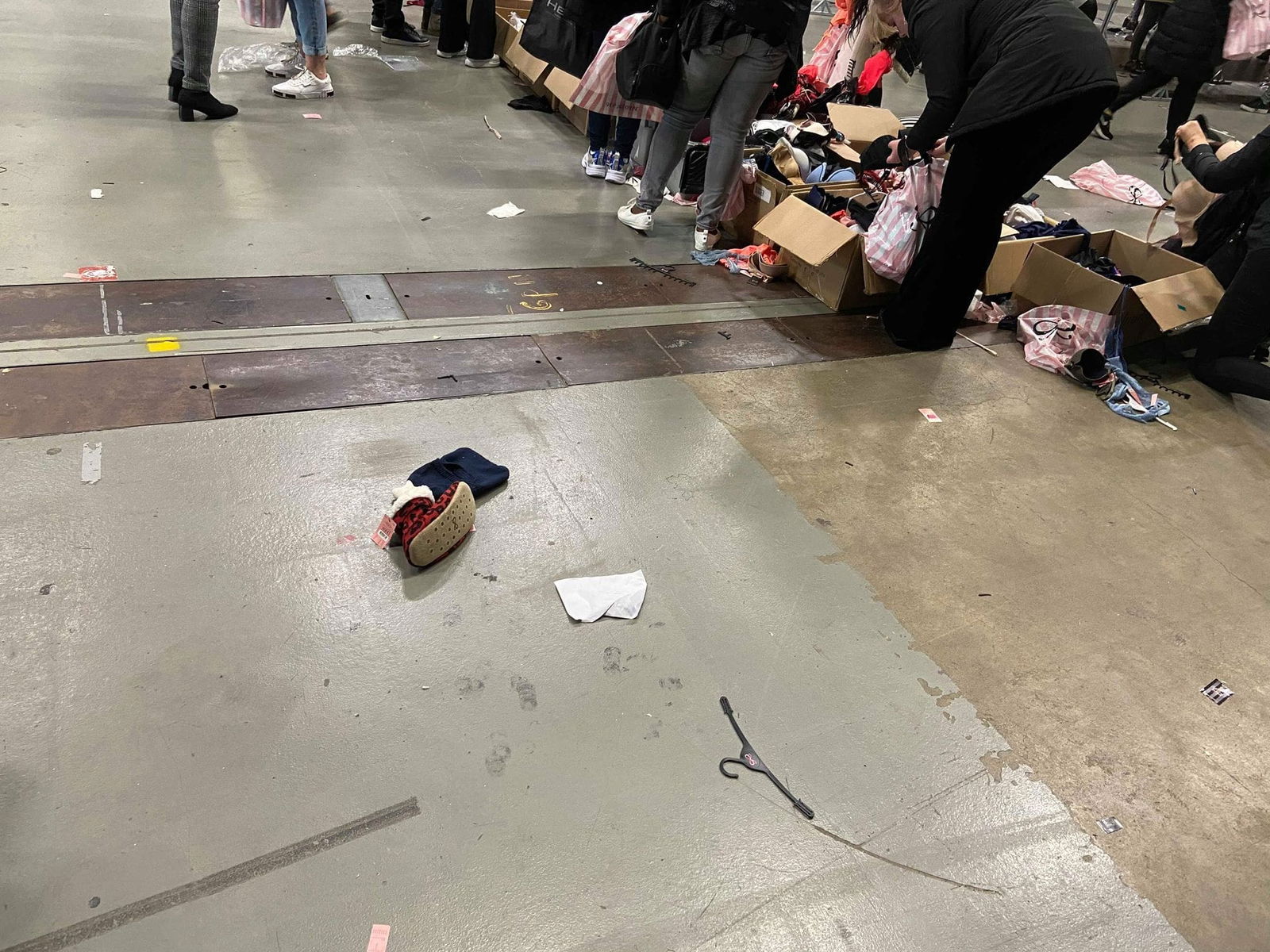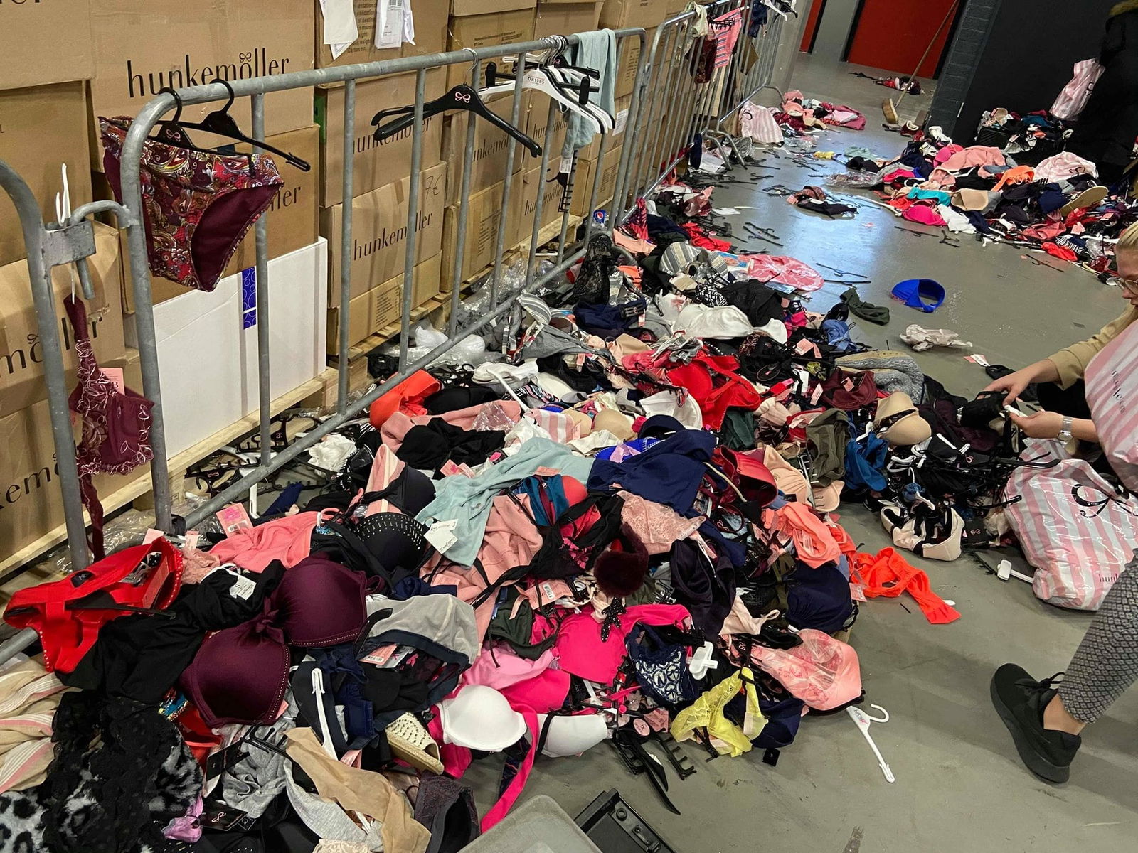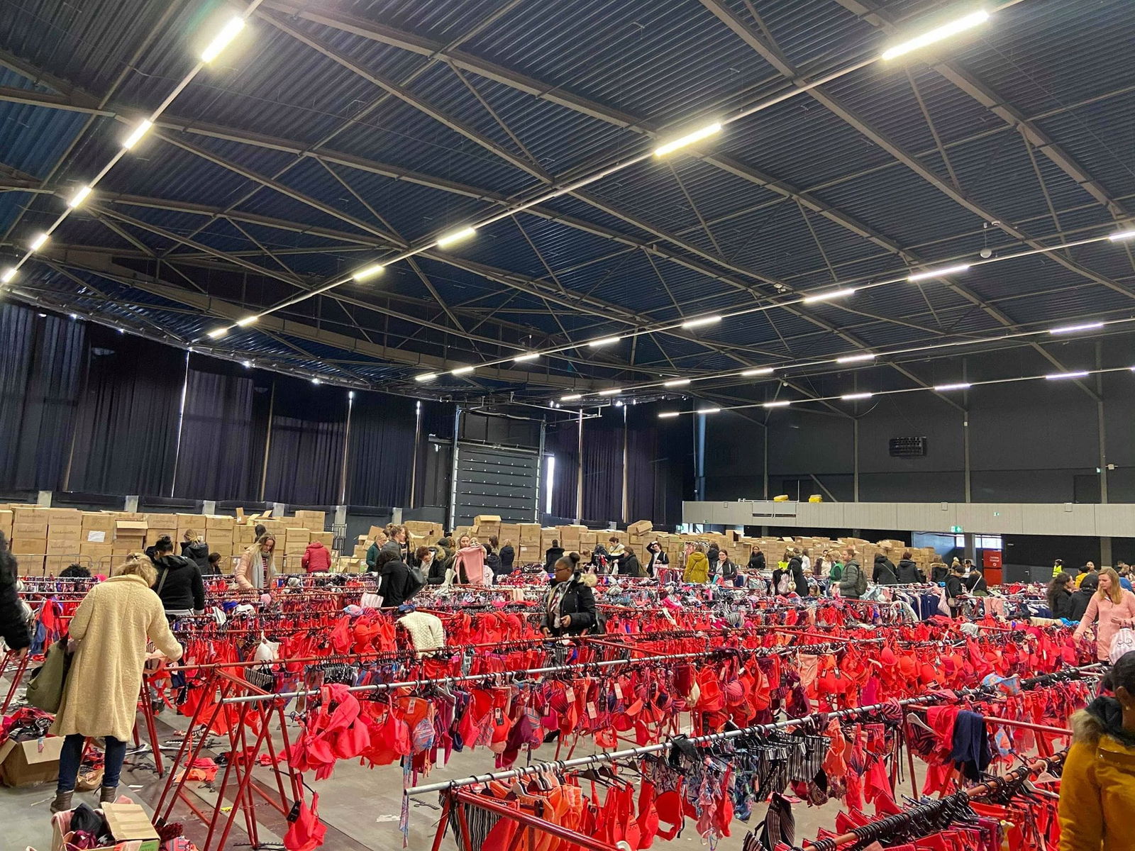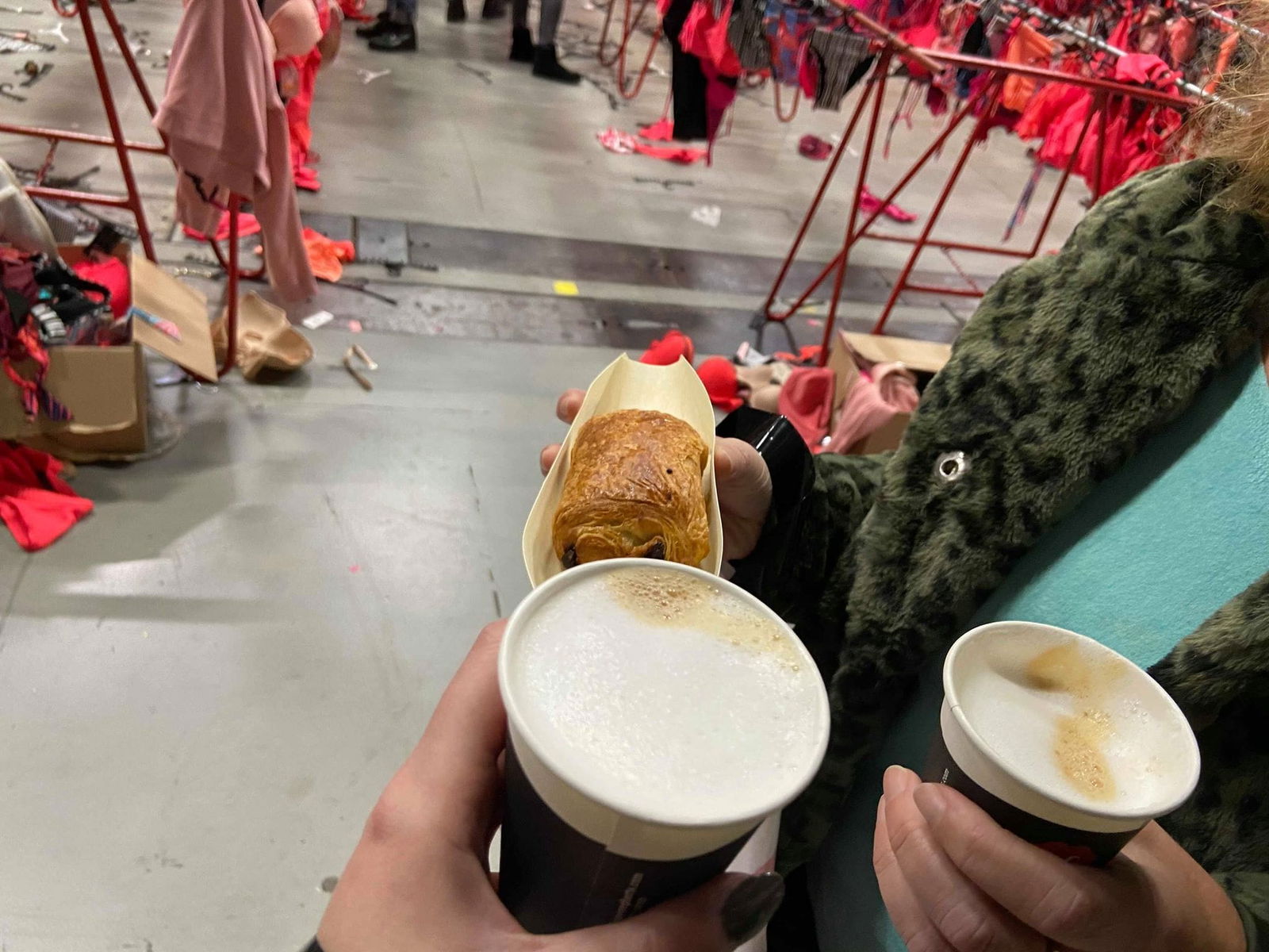 Op de grond tussen alle bh’ s en slipjes zochten we een plekje om wat te eten en koffie te drinken. Dit deden meer mensen en zo krijg je hele gezellige gesprekken, haha.