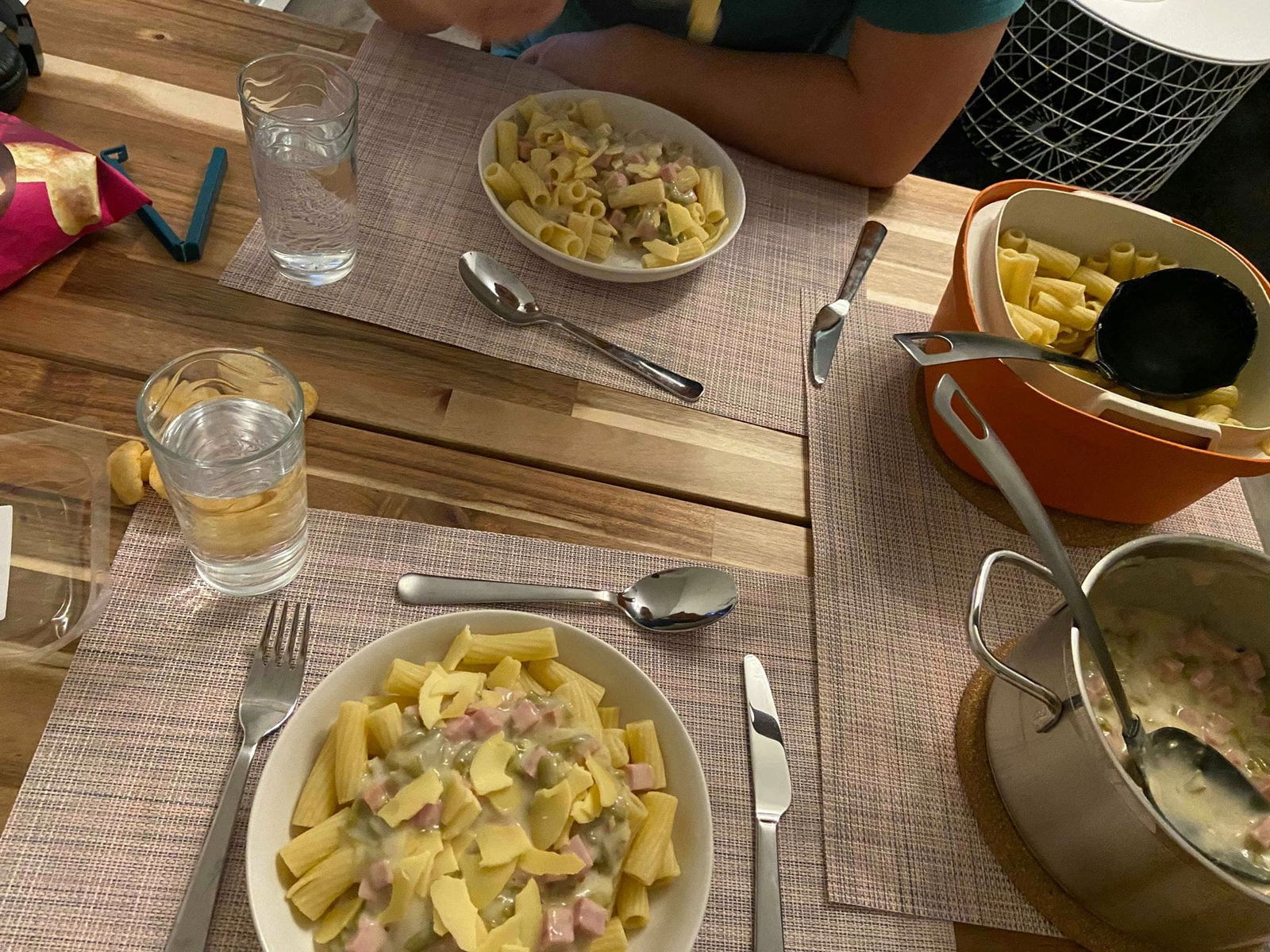 Thijs maakte macaroni. Mhh heel erg lekker!