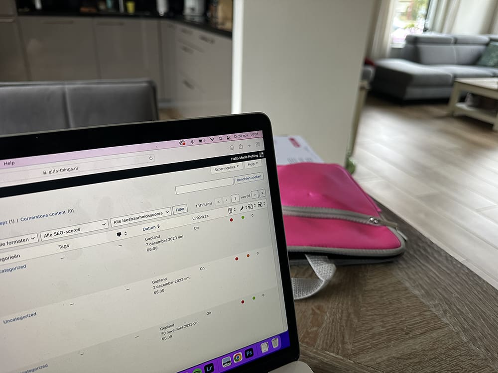 Dinsdag (28 november). Na school heb ik thuis eerst veel achter de laptop gewerkt.