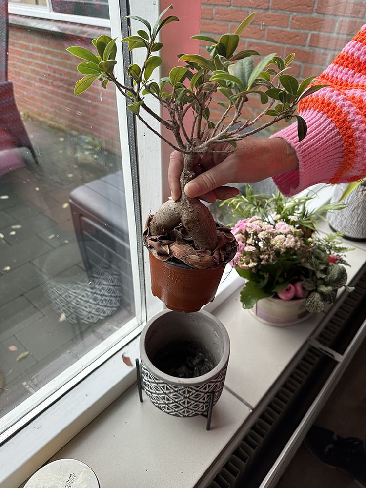 Moeders heeft mij daarna geholpen met het plaatsen van de planten.