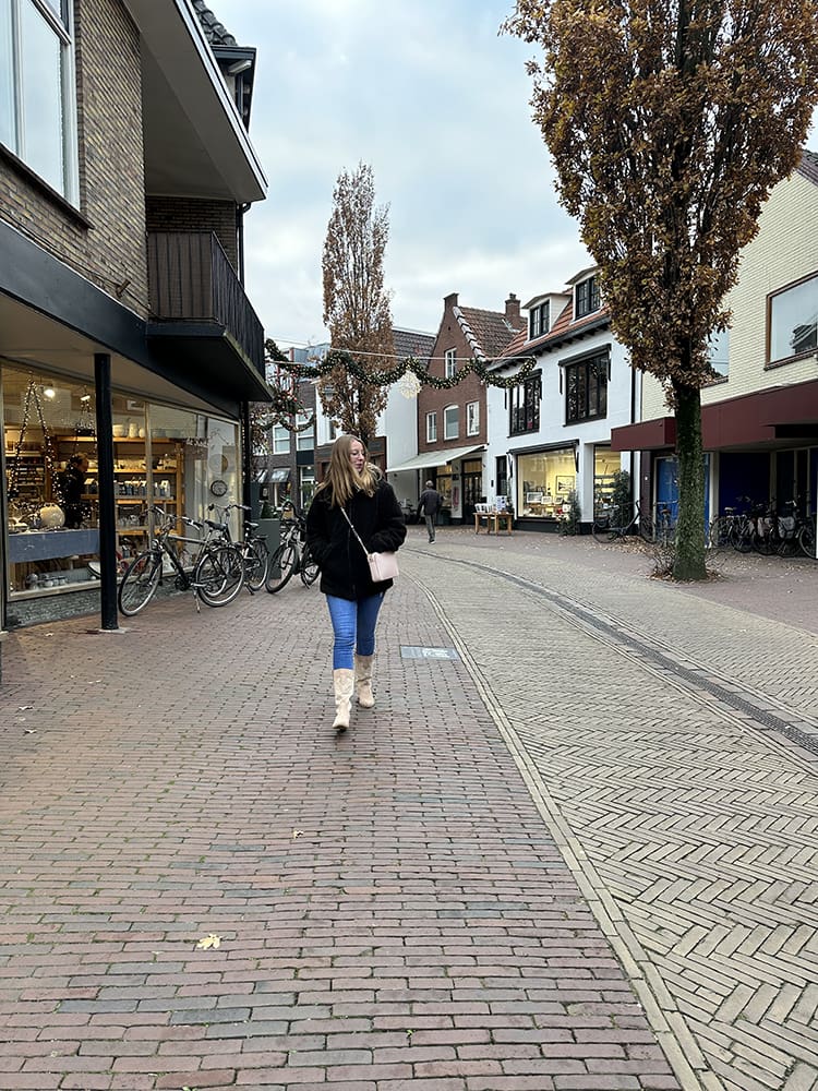 Daarna zijn we naar het centrum gewandeld met Sylvie. Ik wilde vast kijken hoe de straat eruit ziet waar we gaan staan met een wintermarkt.