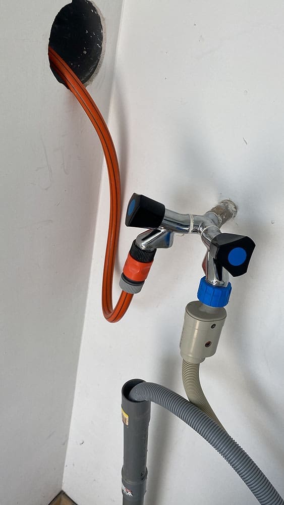 De monteur kwam die middag ook nog. Onze kraan naar de wasmachine lekte. Deze is nu vervangen voor een dubbele kraan. Zo is de wasmachine slang aangesloten en onze tuinslang. Anders moesten we de hele tijd wisselen. Dat is niet handig.