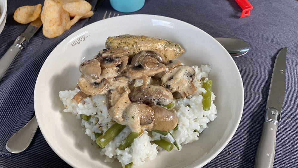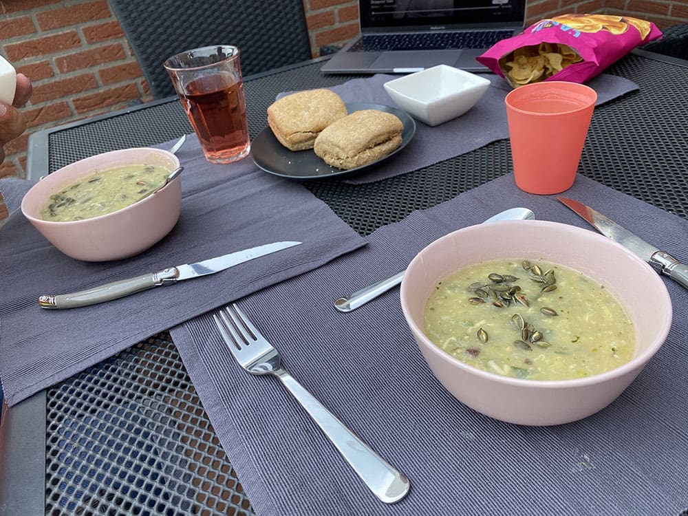 Lekker buiten eten. Vooraf een soep en daarna hadden we een risotto.