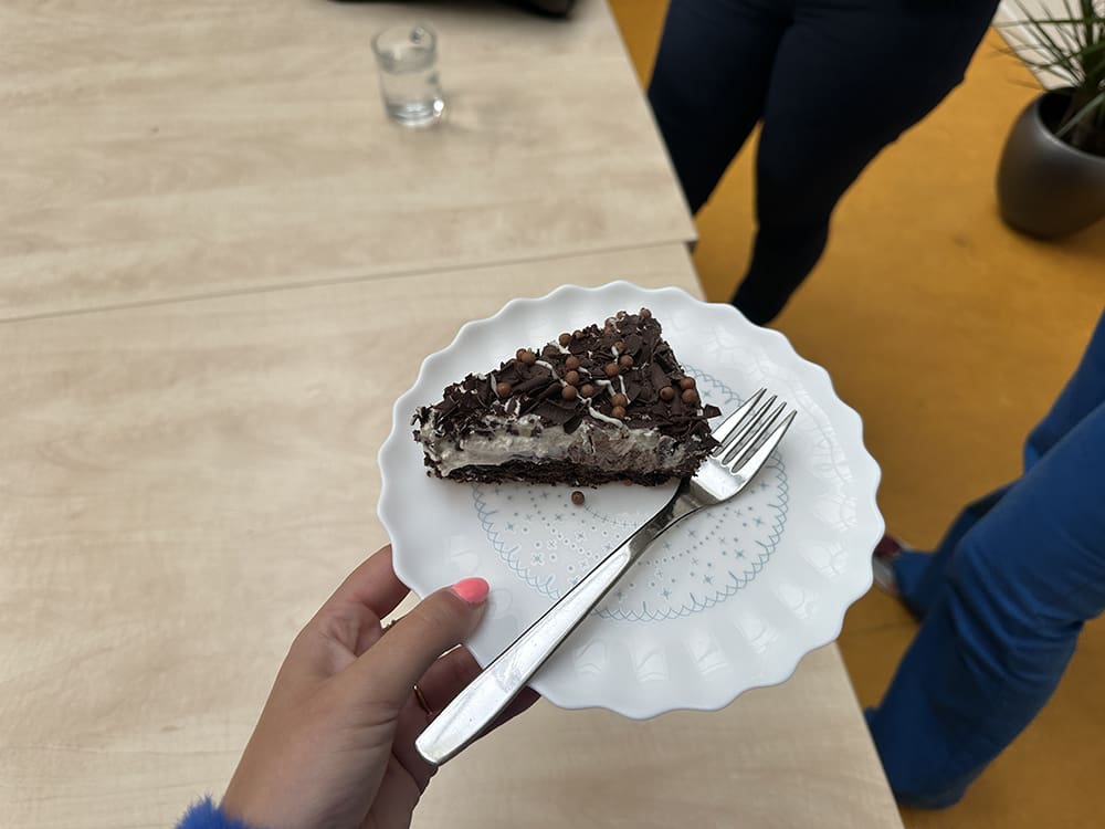 Donderdag (7 maart). Ik ging weer naar school. We hadden een studiedag. Tijdens een korte pauze was er taart van een jarige collega. Lekker!