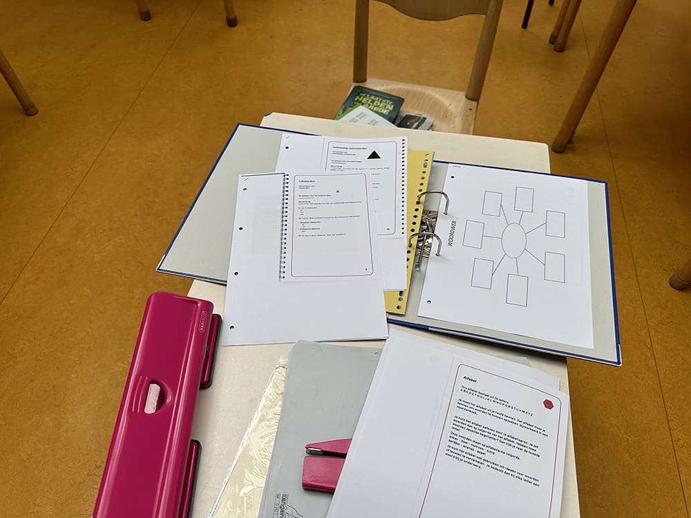 Tijdens het middaggedeelte heb ik samen met Ilse en Lysanne (de andere twee onderwijsassistenten) allemaal taalwerkjes verzameld. Dit zit nu overzichtelijk in een map. Er zijn nogal wat wisselingen en veel invallers. Dit is hopelijk helpend.