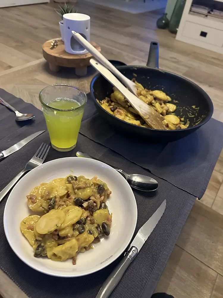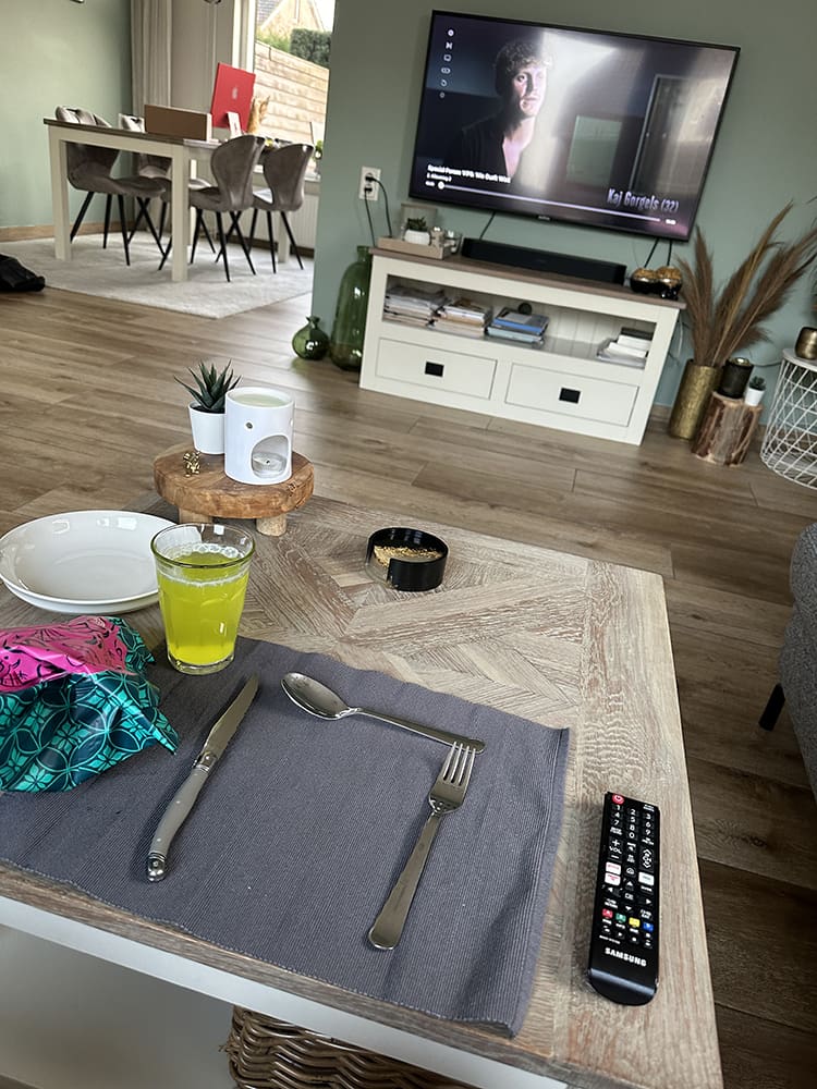 Ik kwam later thuis. Thijs had een padel afspraak. Hij had voor mij alles klaargezet om te eten. Super lief. Ik was namelijk erg moe. Nadat Thijs terug was, zijn we in de jacuzzi geweest. Ik viel daar al bijna in slaap. Snel naar bed.