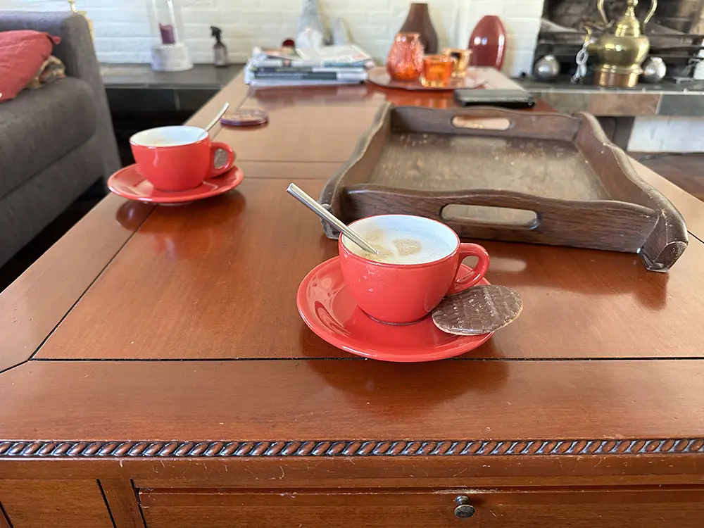 Zaterdag (9 maart). Op bezoek bij oma. Ik maakte een lekkere cappuccino voor ons.