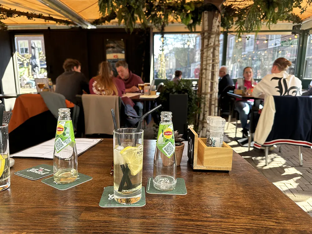 We zaten er zo heerlijk. We namen nog een ronde twee, haha. Lekker met het zonnetje.