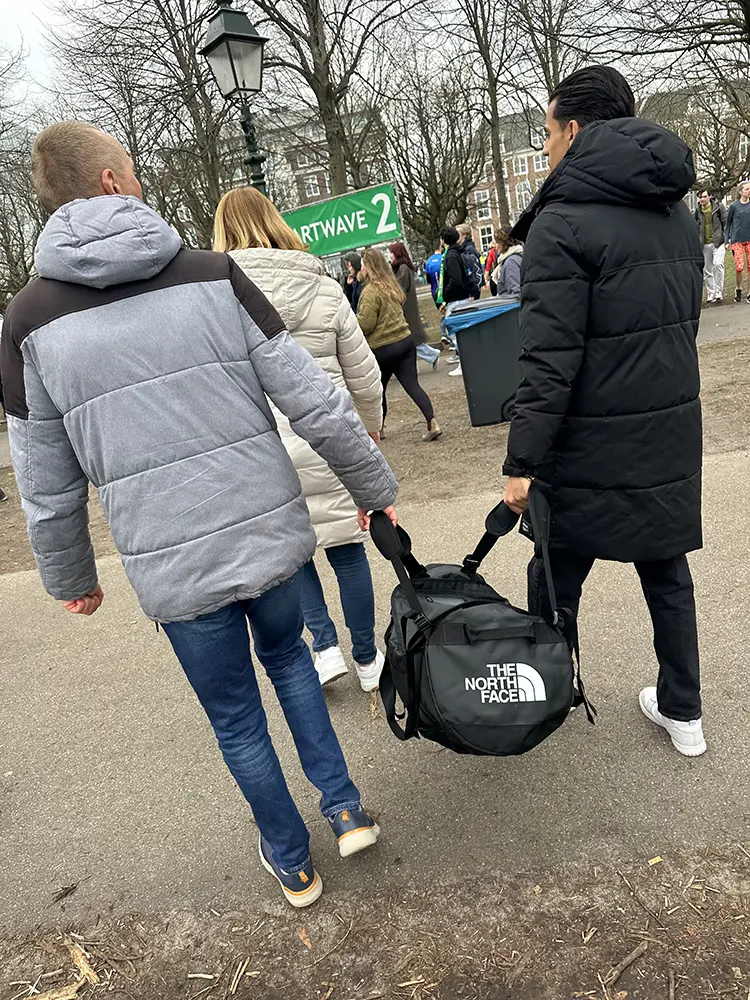 Wat we wel mochten doen: de tassen meenemen, haha. Die van Jolynn was zwaar joh. We hebben hem om en om gedragen, haha.