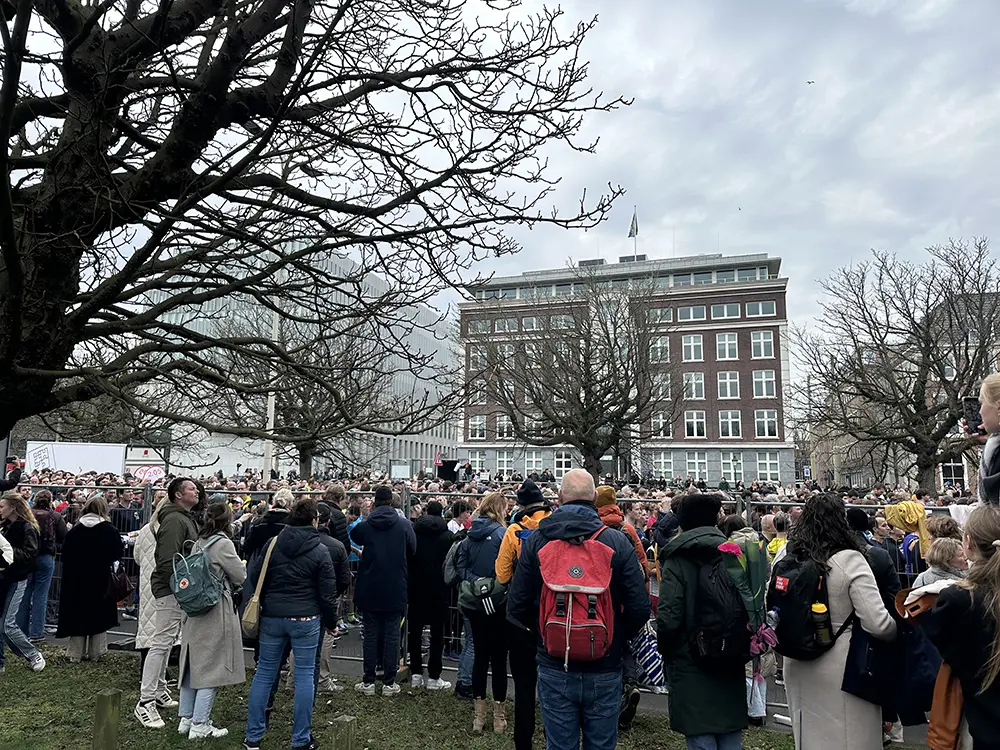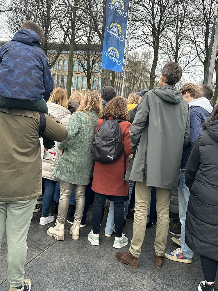 Daar zijn we dan op het Malieveld. De moeder van Thijs en haar vriend waren er ook. En mijn tante en neef ook. De voorbereidingen zijn begonnen.