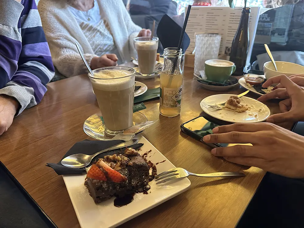 Het was overal lekker druk. Maar gelukkig was er nog een plekje. Een warme koffie en wat lekkers gaat er zeker in. Daarna zijn we terug naar het Malieveld gegaan. Een collega van mijn tante liep best snel en die wilde ze natuurlijk binnen zien komen.