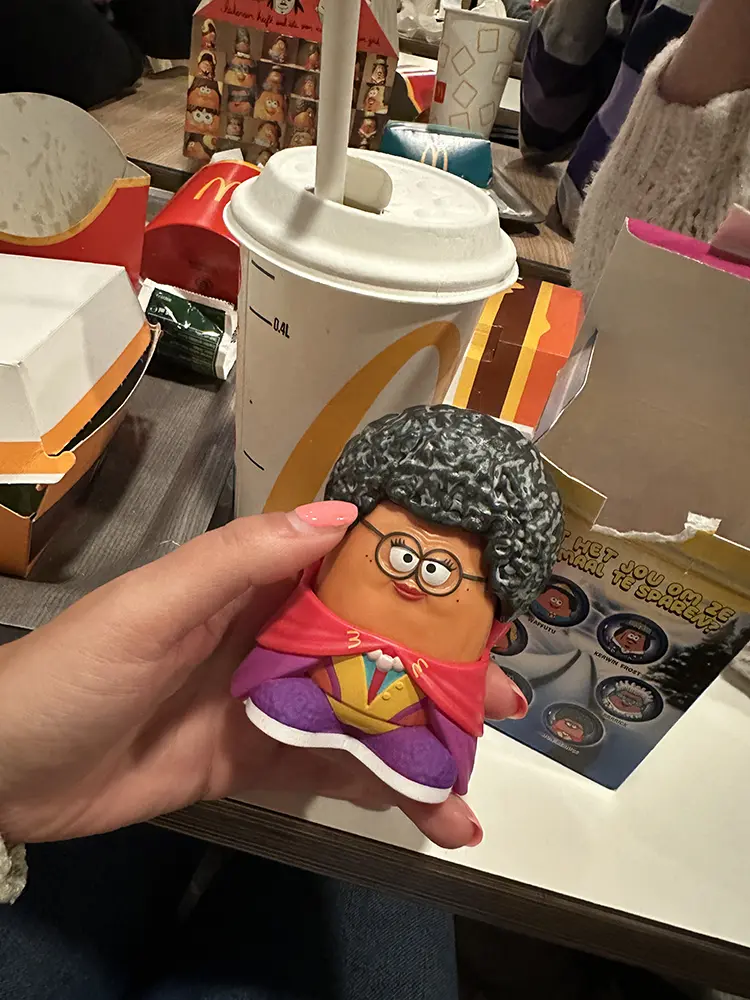 Wat Thijs na het lopen alleen nog maar wilde: zitten en eten bij de Mac. Dan doen we dat, haha. Mijn derde Mc Nugget heb ik gehaald, haha.