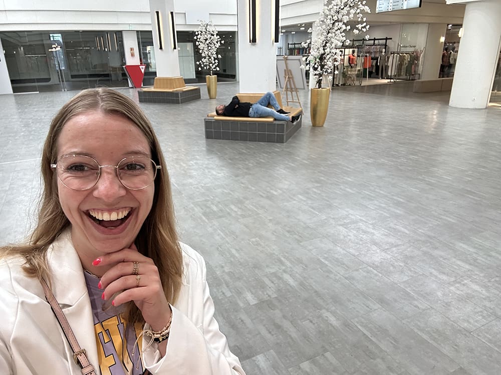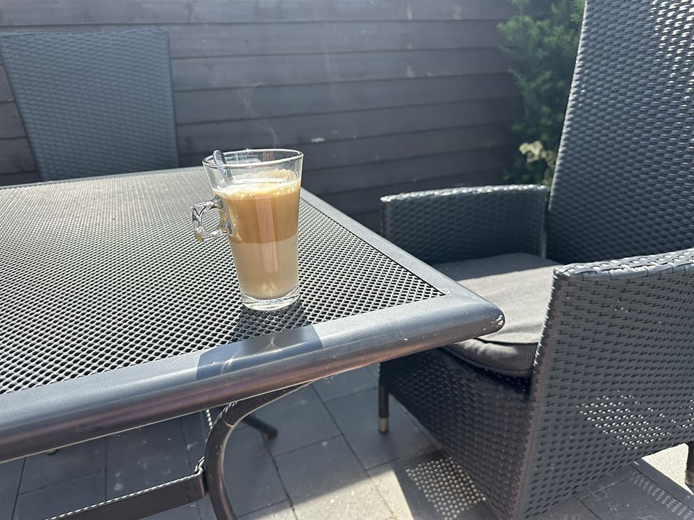 Yeah, de zon. Lekker buiten koffie drinken en bezig op Insta.