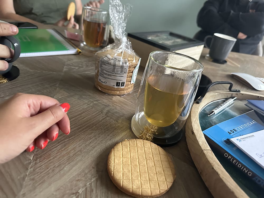 Woensdag (19 juni). Na mijn ochtend werken, ging ik even naar huis. Daarna reed ik door naar Doetinchem. We hadden daar ons teamuitje. Bij Meester Mokka begonnen we. Hier mochten we boeken uitzoeken.