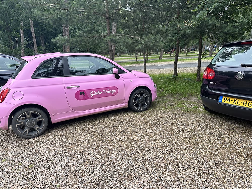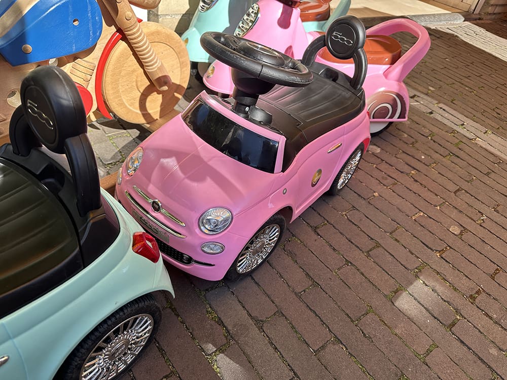 Bij de ijssalon hadden ze voor de kinderen een mini Fiat 500 staan. Mijn roze kleur! Haha.