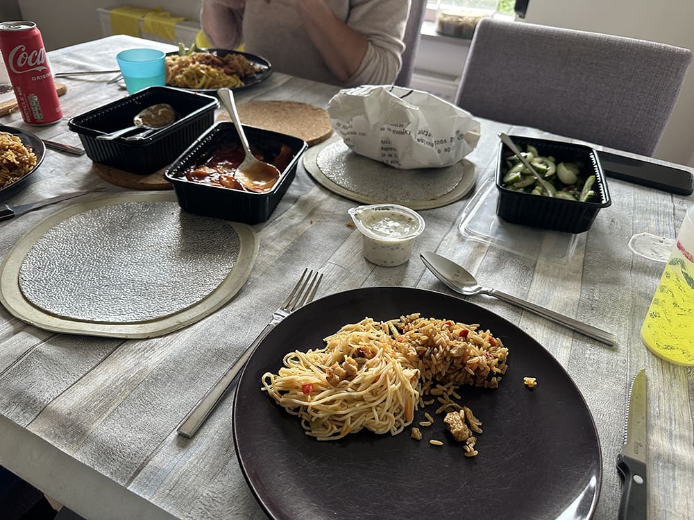 We hadden Kippie gehaald en samen bij mama dat gegeten.