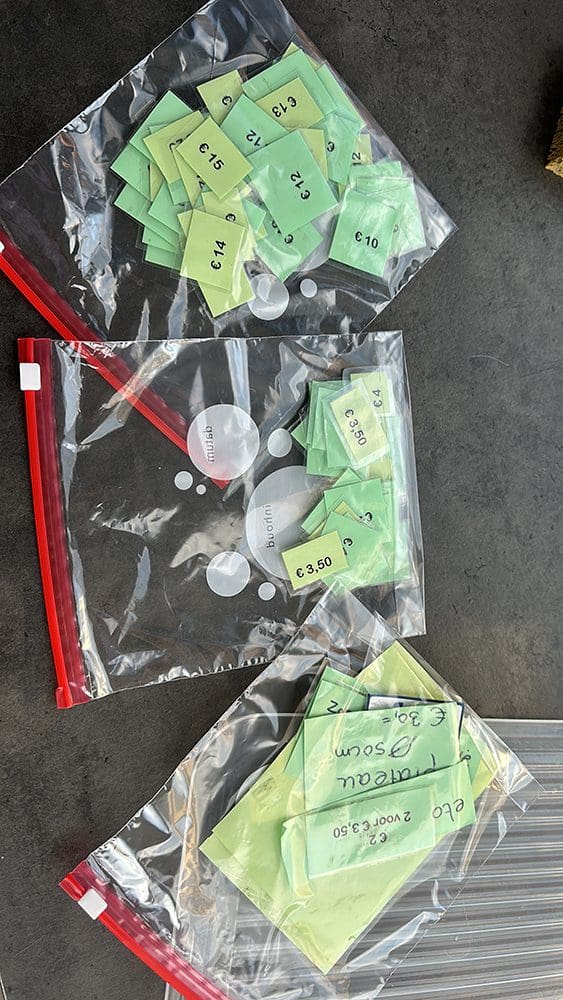 Na het eten heb ik nog wat spulletjes ingepakt voor de markt en onze prijskaartjes eens goed geordend, haha.