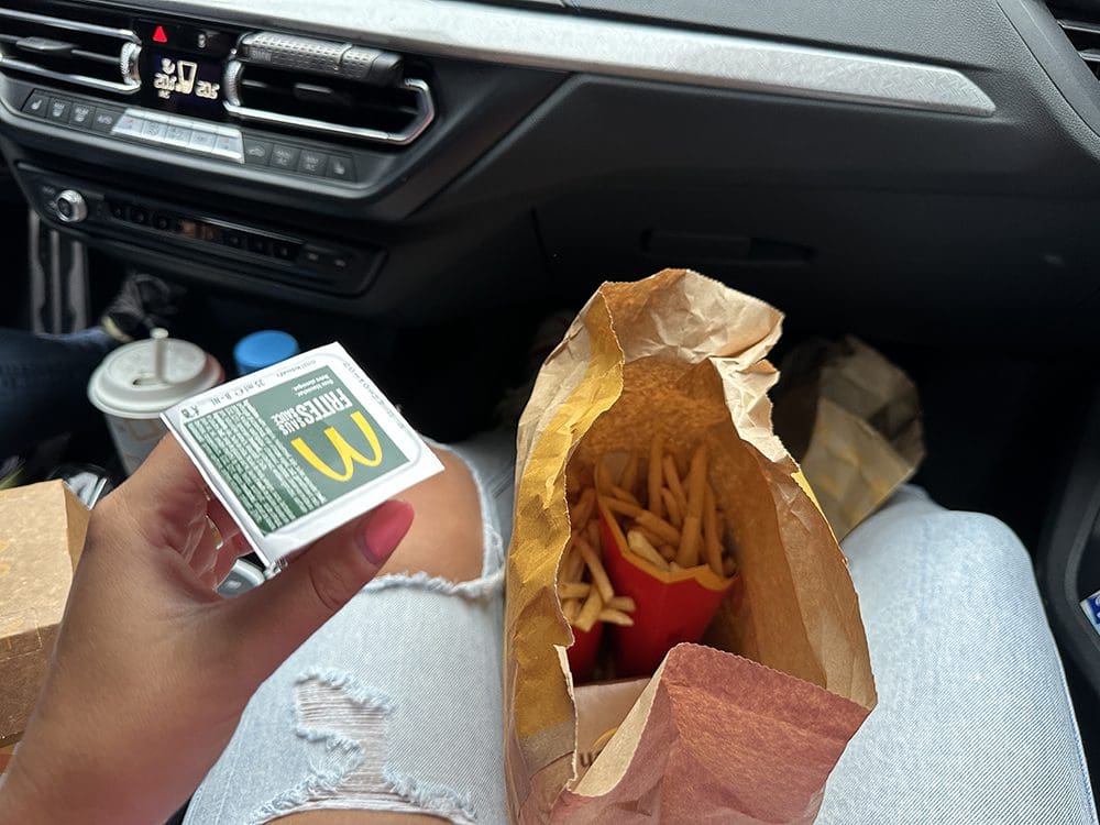 Het was ondertussen etenstijd op de terugweg. Lekker wat Mc Donalds eten.