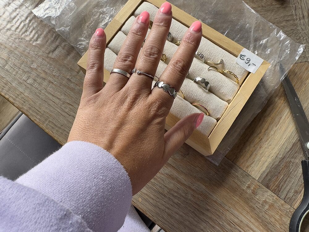 Thuis ging ik aan de slag met de nieuwe sieraden. Deze heb ik ingericht voor de marktkraam. Uiteraard zelf ook een ringetje gekocht. Hoe cute zijn die hartjes?!