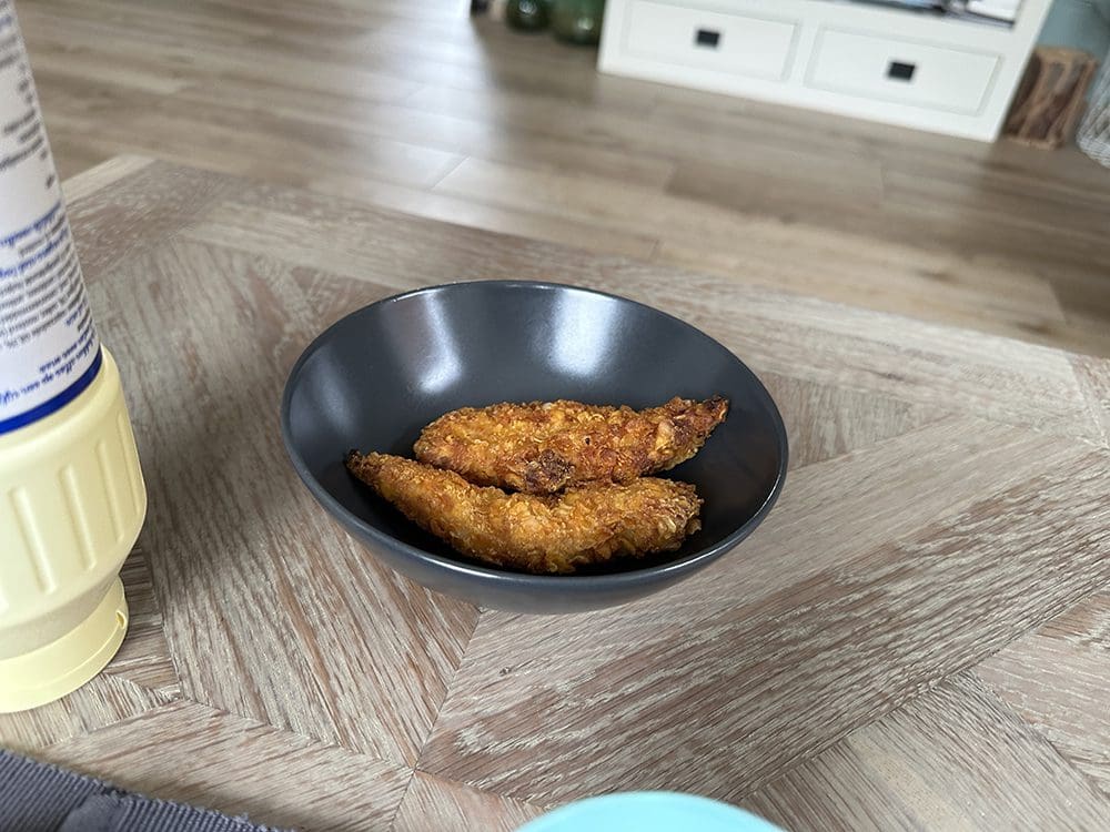 We hebben bij het avondeten gelijk wat van deze heerlijke krokante kipjes gegeten. Mmhh.
