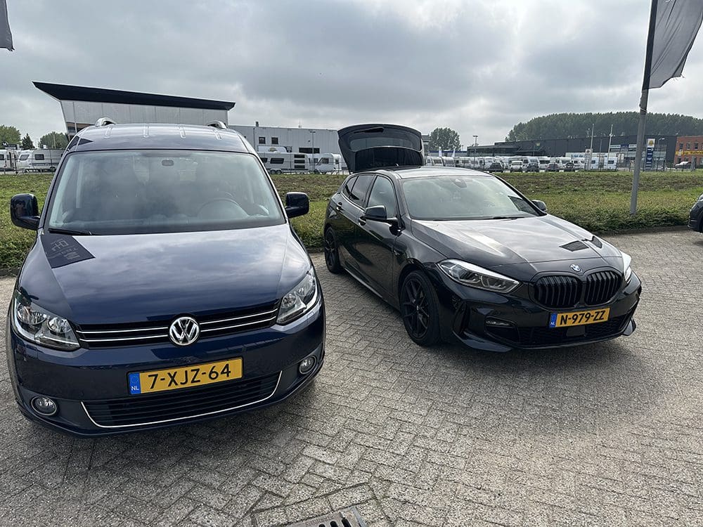 Daarna was het dan zo ver…. Thijs gaat zijn BMW inruilen voor een Caddy. De Caddy gaan we gebruiken om mee naar de markten te rijden. Veel meer ruimte. Maar ook kunnen er nog gewoon drie personen achterin zitten. Dus het is ook onze ‘gewone’ auto.