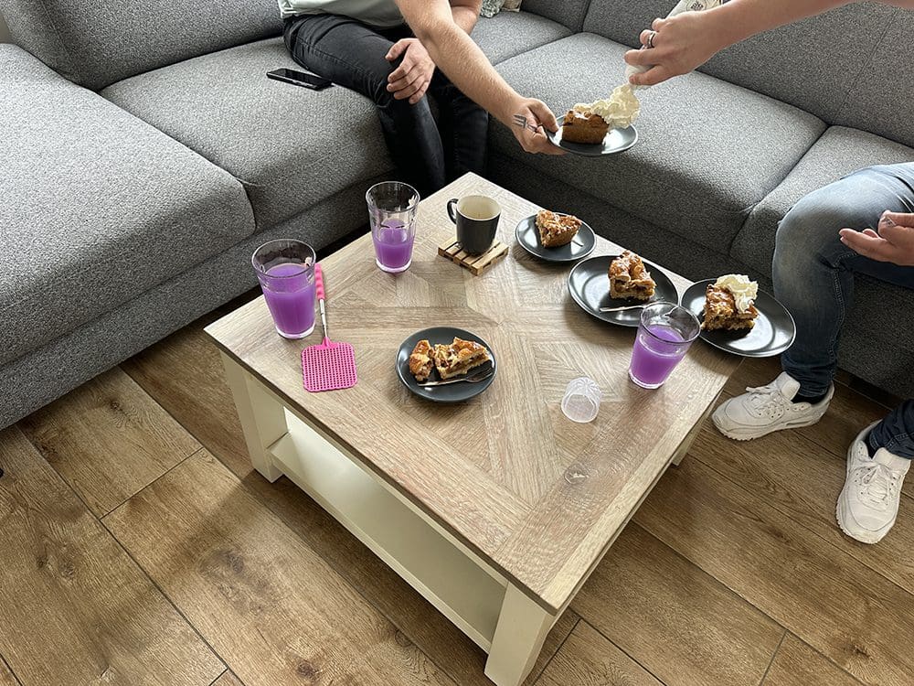 De buurvrouw had tijdens het opruimen nog wat koeken over. We mochten er nog eentje. Lekker!