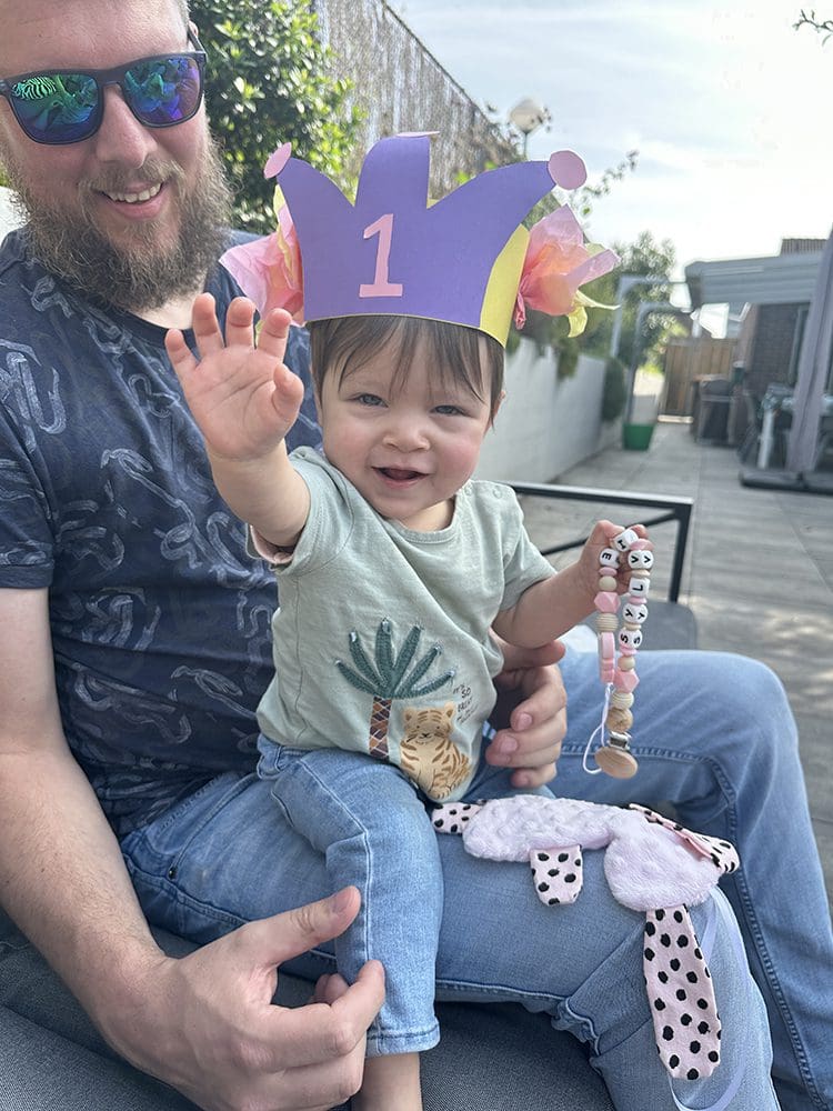 Ze was erg blij met haar cadeautje: een knuffeltje en speenkoord. Super cute.