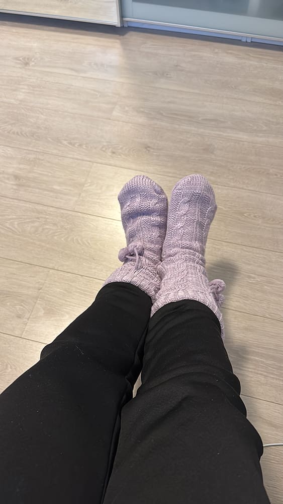 Maandag (25 november). Ik was zo moe. Beetje grieperig gevoel. Niet gek als je het hele weekend leeft op ibuprofen. Dat is een keer klaar… Ik deed mijn nieuwe dikke huissokken aan.
