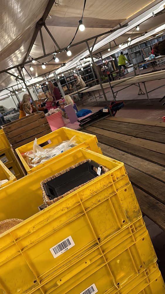 Om 21:00 konden we opruimen. Ik was kapot. Maar het was een zeer geslaagde markt. Leandra staat de dag erna er ook. We hebben haar kraam helemaal ingepakt zodat ze wat dingen op de kraam kon laten liggen. Er was beveiliging op het terrein.