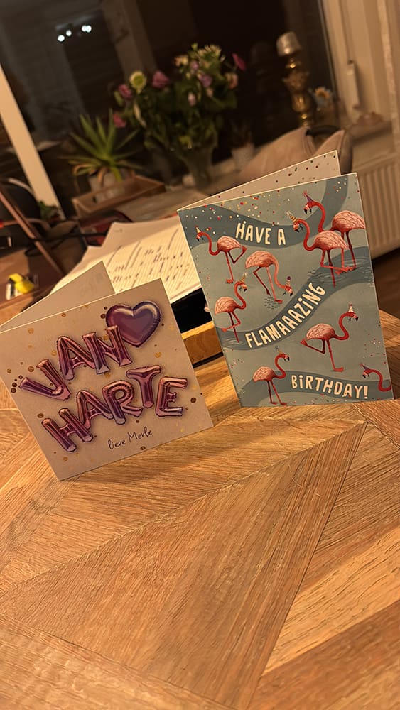 Jolynn ging mee en bleef slapen. Ik kwam thuis en er waren al twee verjaardagskaarten voor mij gekomen, super leuk.